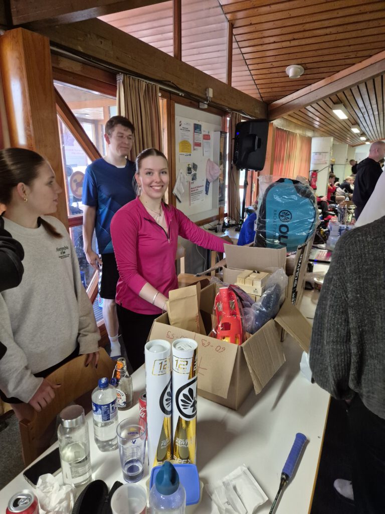 Wie im vergangenen Jahr wurde das Turnier am Freitag um 10:00 Uhr mit einer spektakulären Einlaufshow eröffnet. Danach durften sich die Spieler*innen in ihren Spielklassen im Mixed duellieren. Das Turnier wird traditionell in drei Spielklassen entsprechend des Leistungsniveaus aus der vorherigen Saison gespielt. In der Spielklasse A gingen einige Spieler*innen an den Start, die in der Saison Einsätze in der Bundesliga bekommen haben. Bis 22:00 Uhr liefen die Spiele im Mixed, ehe die Gewinner*innen ermittelt waren. Danach folgte das erste Glücksburger Pub-Quiz, an dem über 20 Teams teilnahmen und in drei bunt gemischten Runden ihr Wissen unter Beweis stellen konnten. Frisch und ausgeruht starteten unzählige Paarungen am Samstag in das Doppel.